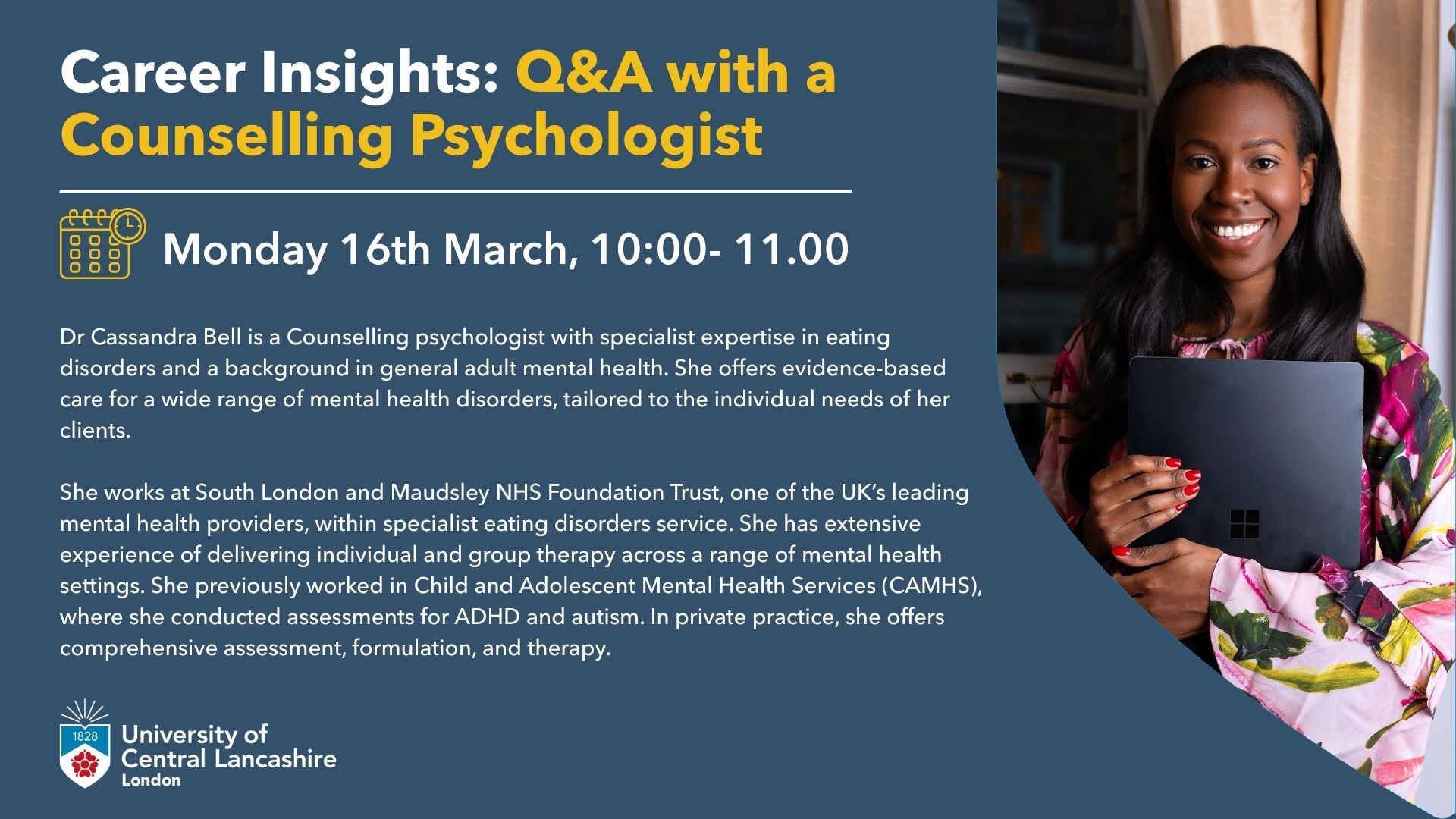 Dr Cassandra Bell is a Counselling psychologist with specialist expertise in eating disorders and a background in general adult mental health. She offers evidence-based care for a wide range of mental health disorders, tailored to the individual needs of her clients.